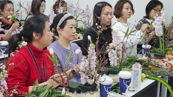 2026年3月13日,上海邮政“春天的故事”插花培训讲座在上海市黄浦区插花花艺进修学校举行。