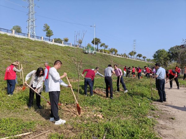 中堂分会开展百果园植树活动,10余名员工合力栽植百香果树苗,以实际行动响应植树节号召,为厂区添绿、为发展增色,践行生态保护理念。