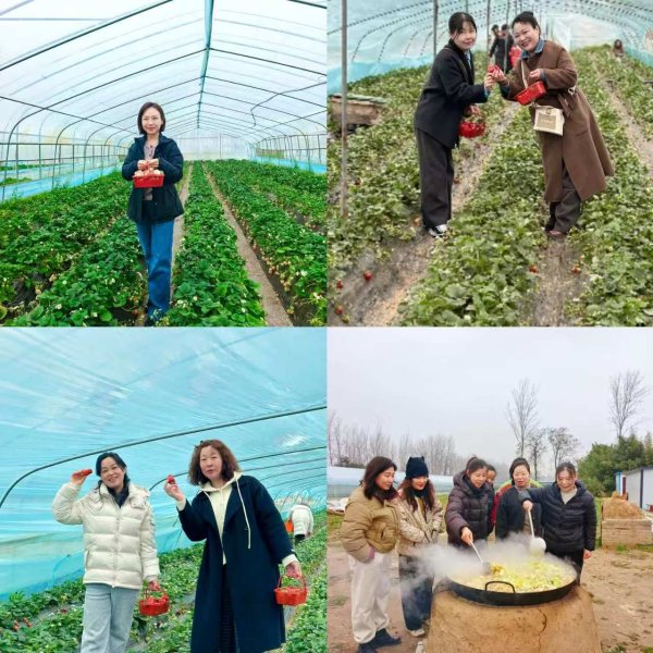 草莓采摘区内,女职工们提着小篮,穿行在绿叶掩映的田垄间,亲手采撷春日里第一抹红润鲜甜的草莓。在农家土灶区域,大家分工协作,烧火、洗菜、切菜,用最朴素的方式烹饪出地道的“大锅烩菜”。活动尾声,大家围坐分享热气腾腾的流心蜜薯,畅谈劳动带来的满足与快乐。
