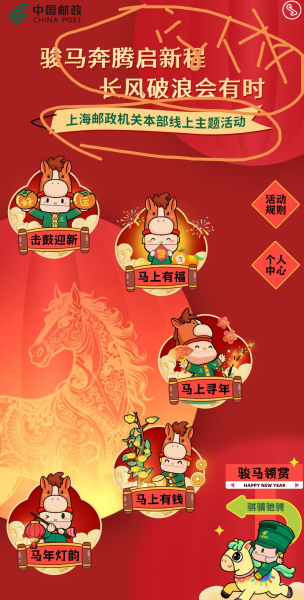 为迎接2026年丙午马年,营造喜庆祥和的节日氛围,激发机关员工的工作热情与创造力,上海邮政机关工会于春节期间组织开展了“骏马奔腾启新程 长风破浪会有时”线上主题活动。本次活动自2月16日启动,至3月16日结束,机关本部有300余名工会会员积极参与,在“云上”共度了一个充满年味与文化气息的新春佳节。