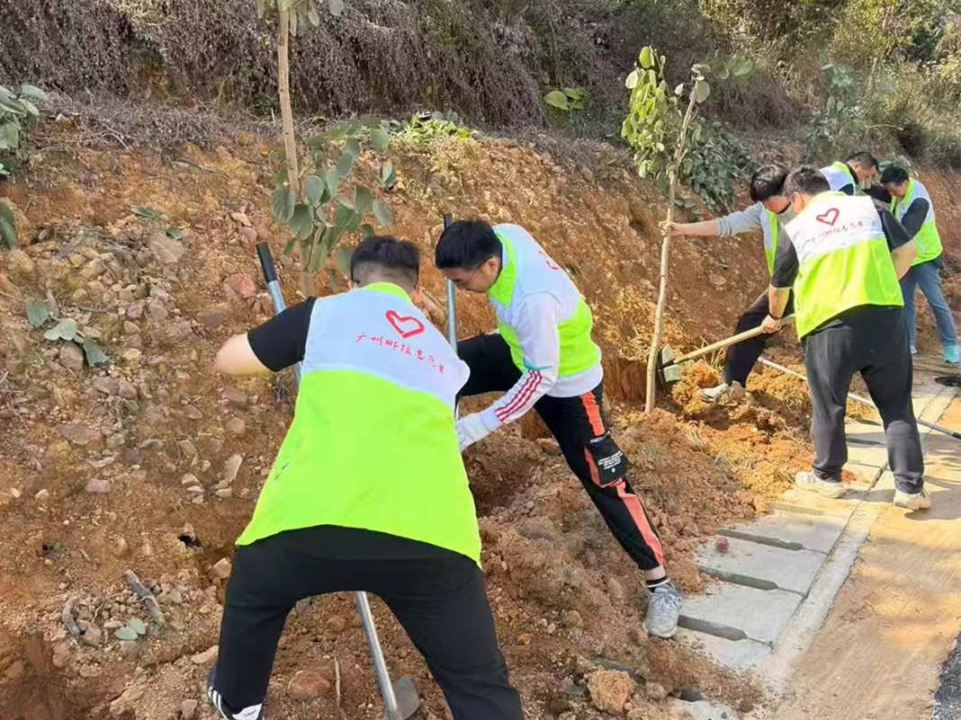 3月12日第48个植树节当天,“青春志愿行 奋进‘十五五’”主题活动火热开展。干部员工及青年文明号代表走进省“百千万工程”对口帮扶的从化街口街辖区村庄,共植“绿美青年林”。大家身着志愿服装,分工协作、挥锹铲土、扶苗定植、填土浇水,累计栽植宫粉紫荆、扶桑等苗木50棵,为乡村增添新绿。活动同步融入红色教育与文化传承环节,参与者前往从化革命烈士纪念碑缅怀先烈、传承基因,在中国国家版本馆广州分馆(文沁阁)沉浸式观展,探寻中华文脉、感悟时代精神,实现生态实践、红色教育、文化浸润有机融合。