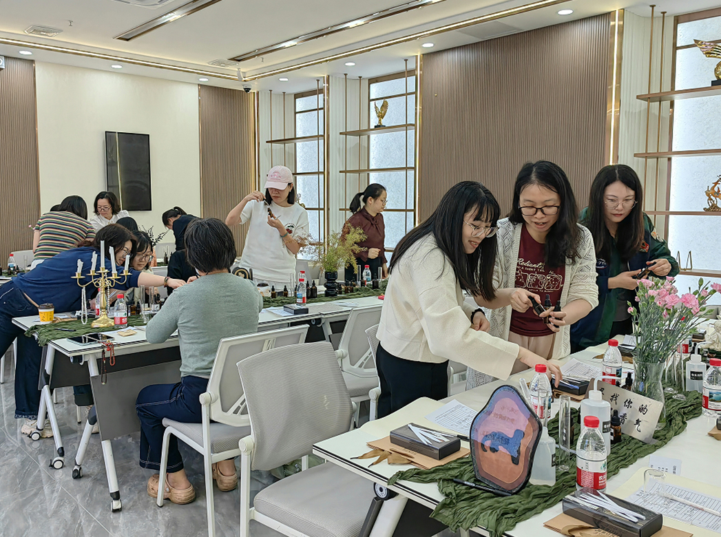 同时,还组织职工在江海财富中心体验芳香精油调香活动。活动现场,专业老师讲解香水起源与精油知识,开展趣味有奖问答调动大家的参与热情。随后,职工们亲手挑选精油、调配专属香水,在动手创作中舒缓身心、乐享惬意时光,进一步增进了彼此交流。