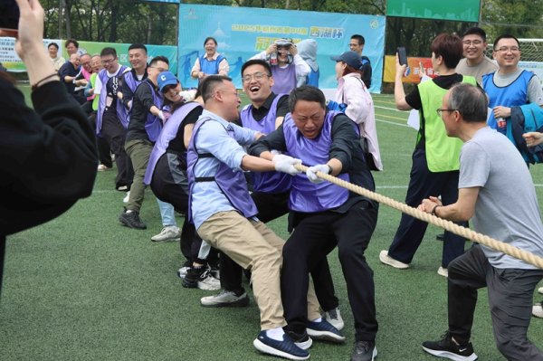 随后,各代表队精神抖擞亮相,喊出响亮口号。赛场上,“万众一心”拔河、“勇立潮头”协作赛等趣味项目依次开展,选手们在欢声笑语中挥洒汗水,生动诠释了“快乐工作,健康生活”的理念。