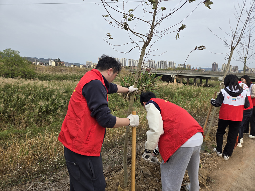 翁源、始兴、曲江、乳源等县域公司组织党员干部、团员青年及员工代表在专业技术人员指导下,挥锹铲土、定点挖坑、扶苗定根、培土围堰、提水浇灌,为春日大地增添浓浓生机与希望。