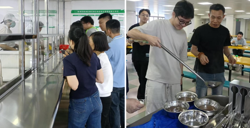 食堂开业首日,珠海邮政工会工作人员到场走访,实地查看设备运行、器具消杀及菜品口碑反馈;综合办工作人员现场手把手指导职工使用食堂线上订餐、结算小程序。开业当日早餐就餐60人次、午餐就餐120人次,新鲜可口的菜品收获全体职工一致好评。