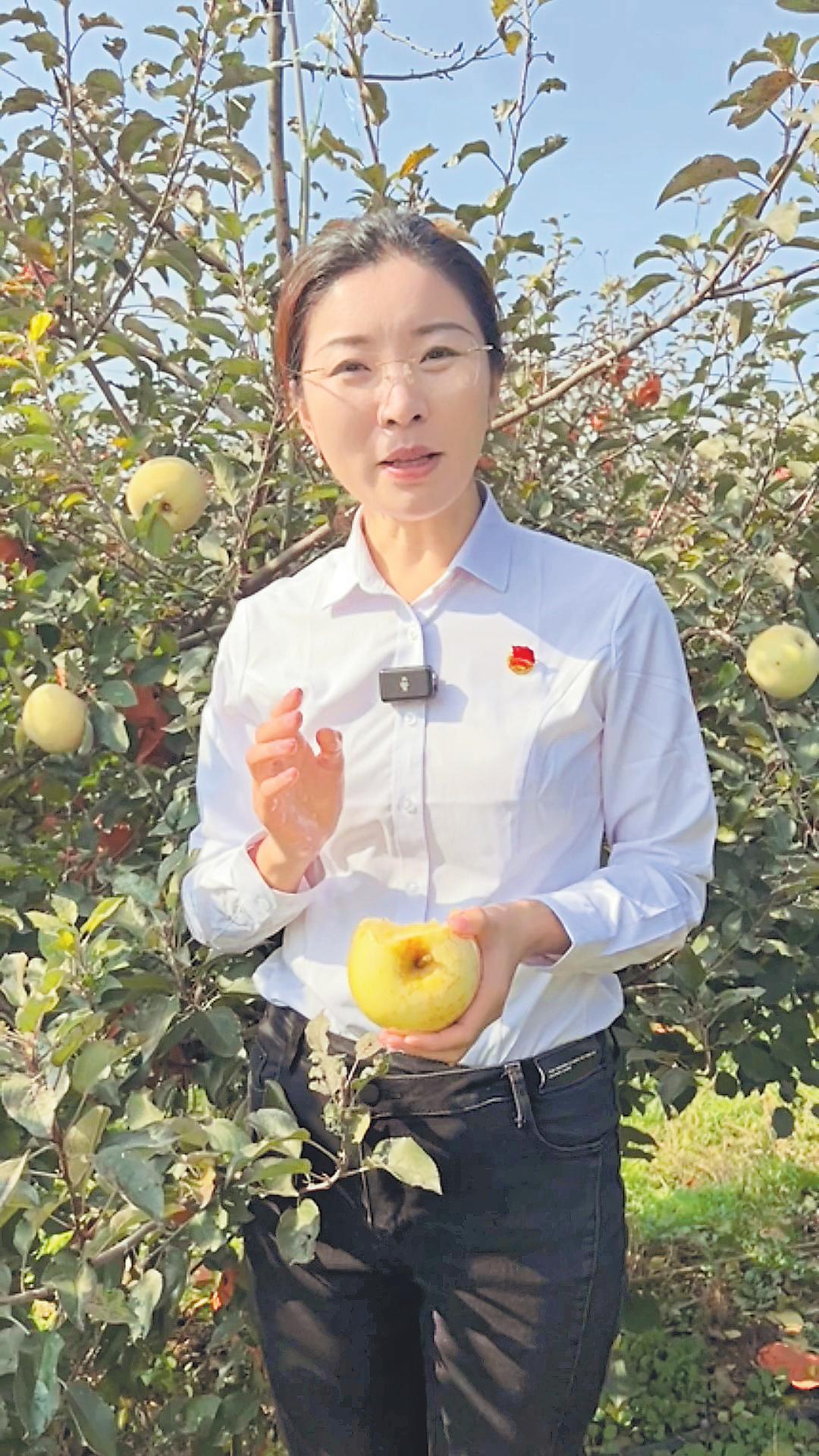 周洁在直播间推介烟台苹果。