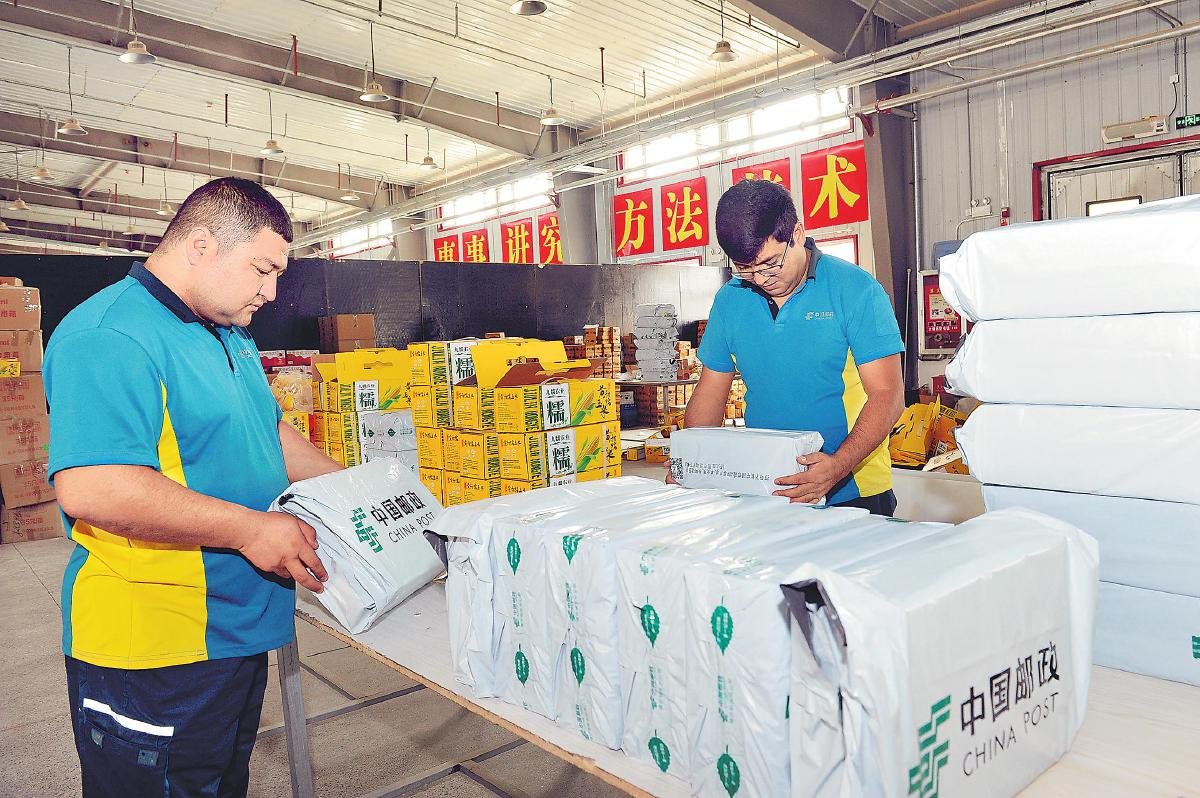 麦麦提艾力·吾布力在收寄电商邮件。