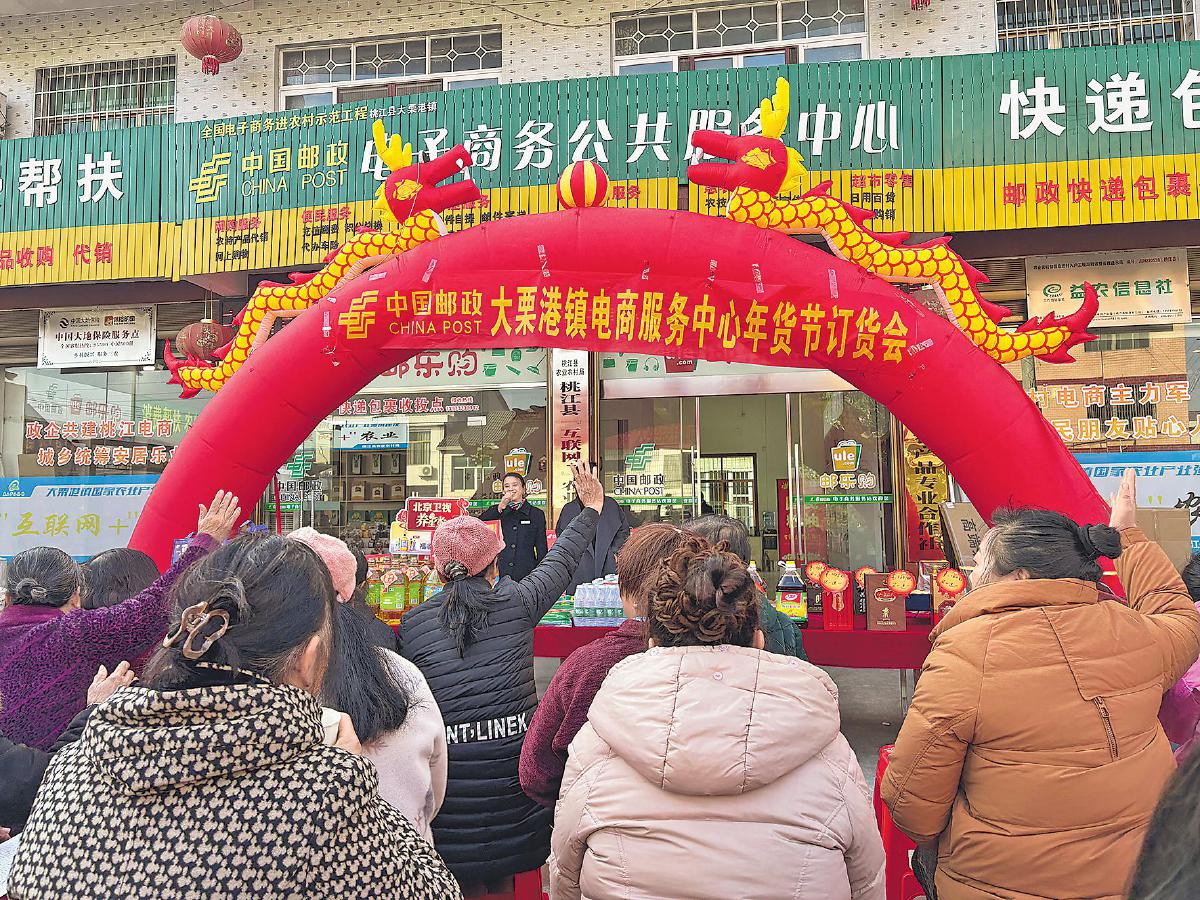 时间刚到9点,这场大栗港支局在镇级站点举办的“年货节”订货会还没正式开始,提早到现场的支局渠道经理肖凤文,已经被几十位村民团团围住了。